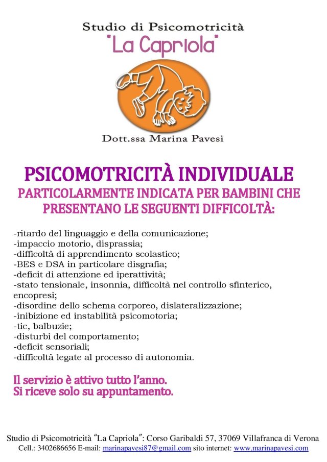 Si ricorda che tutti i percorsi attivati presso lo studio “La Capriola” sono personalizzati di conseguenza l’inserimento in gruppo è sempre preceduto da una consulenza psicomotoria.